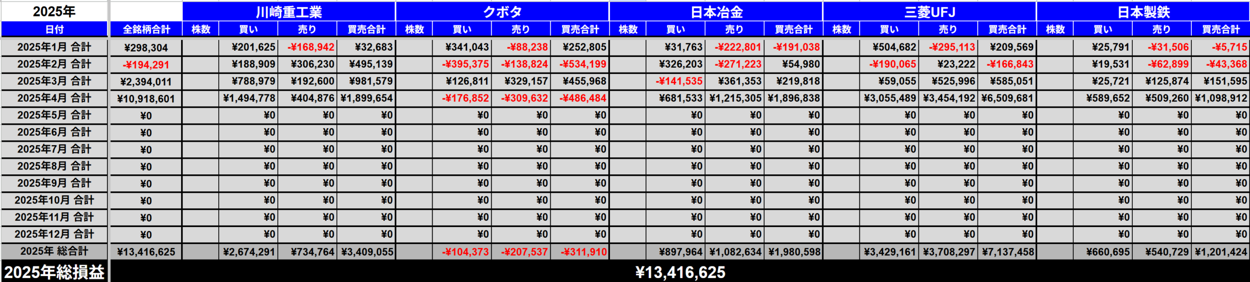 2025年総損益=+13,416,625円